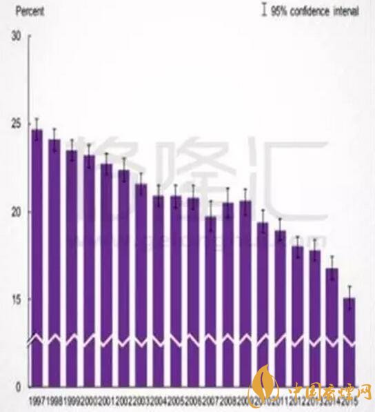 1997—2015年美國(guó)成人的吸煙率走勢(shì)圖