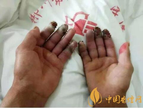 今年8月,谷某雙手手指開始出現(xiàn)間歇性疼痛。起先,他還以為是痛風(fēng),沒太在意,只是在當(dāng)?shù)蒯t(yī)院配了些治痛風(fēng)的藥。兩個(gè)多月后,疼痛明顯加劇,晚上睡覺時(shí)特別疼,整夜整夜地疼,需要靠吃止痛藥才能入睡,慢慢手指遠(yuǎn)端出現(xiàn)發(fā)黑,患者家人這時(shí)很重視,帶患者跑了三家醫(yī)院,確診為"血栓閉塞性脈管炎"。入院前,止痛藥已經(jīng)完全起不了作用,整夜都不能睡,痛得大汗淋漓,一雙手,要時(shí)時(shí)刻刻泡在冷水里面,拿出來時(shí)要用嘴巴吹風(fēng),時(shí)時(shí)刻刻抖動(dòng)雙手,緩解疼痛,一副痛不欲生的樣子。