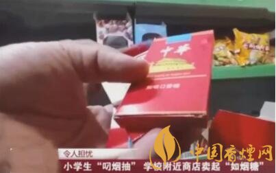 記者在調(diào)查中發(fā)現(xiàn),這樣的糖果,在學(xué)校周邊的小店里上并不少見,一些孩子說,有不少同學(xué)都買過這樣的“如咽糖”,他們都是背著老師、家長,偷偷地吃,有些孩子甚至還會模仿大人抽煙的模樣,用食指和中指夾住,然后把糖叼在嘴上,煞有介事地深吸一口。