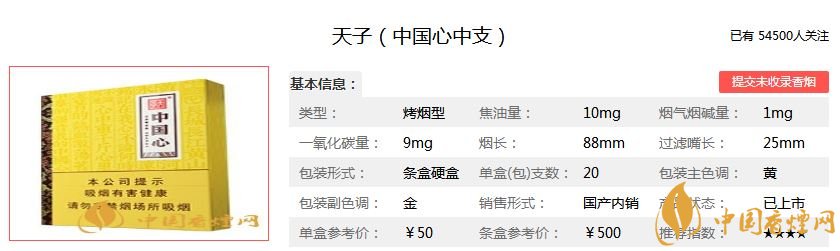 天子香煙是川渝中煙生產(chǎn)制造的,是重慶的香煙品牌,主打的是高端香煙。日前,天子系列香煙有一款天子中國(guó)心中支在三亞上市了,此次在三亞上市表現(xiàn)如何?下面我們一起看一下天子中國(guó)心中支香煙上市基本信息。具體情況如下: