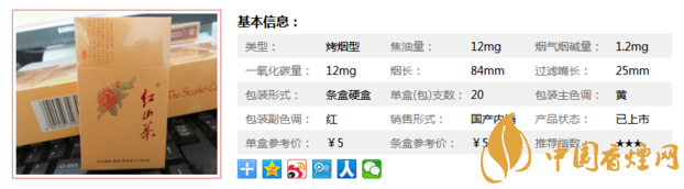紅山茶精品精選國(guó)內(nèi)外優(yōu)質(zhì)烤煙原料,葉組配方真正做到多品種、多地區(qū)、多等級(jí)的全方位配方。紅云集團(tuán)特色加工工藝技術(shù)的使用,保留了優(yōu)質(zhì)煙葉原料的優(yōu)良品質(zhì),帶給消費(fèi)者極具滿足感的體驗(yàn)。據(jù)小編市場(chǎng)調(diào)查所知,紅山茶精品售價(jià)定為5元/包。