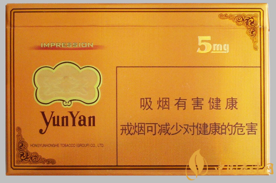 云煙5mg印象香煙以代表富貴的黃為底色和尊貴的咖啡色“云煙”二字,使整款包裝獨具高貴雅致、淡秀天然的藝術(shù)氣質(zhì)。外包裝上所采用的側(cè)翻蓋,具有顛覆性銳意外觀,送人或是自抽都特別有面子。