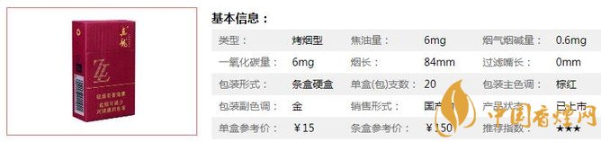 | 類(lèi)型 :烤煙型 | 焦油量 :6mg | 煙氣煙堿量 :0.6mg | 一氧化碳量 :6mg |