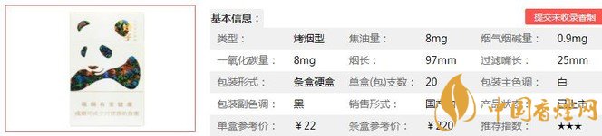 “2014 Pentawards全球頂級(jí)包裝設(shè)計(jì)大賽”金獎(jiǎng)包裝作品,中細(xì)煙支設(shè)計(jì)彰顯優(yōu)雅與品位,山水云竹演繹的多彩熊貓,毛發(fā)纖毫畢現(xiàn)、雙目炯炯有神,絕妙創(chuàng)意與精湛技藝相得益彰。該煙在低焦里算是不錯(cuò)的選擇,如果是喜歡抽的煙都很醇很烈就不推薦此煙了。