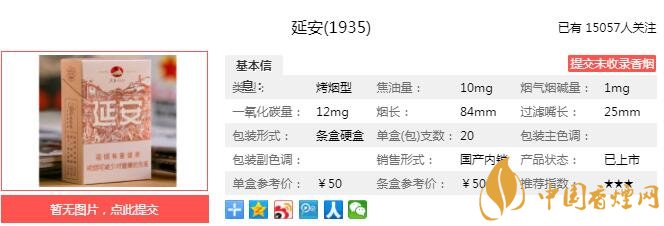 以上便是由香煙網(wǎng)小編為大家介紹的關(guān)于延安(1935)的相關(guān)信息。這款煙給人的感覺就是舒服,除了密碼鎖設(shè)置,銅版螺紋水松紙的設(shè)計(jì)也是一大亮點(diǎn),手感超級棒的。想要了解更多內(nèi)容請點(diǎn)擊:玉溪軟和諧多少錢一包 玉溪軟和諧口感及參數(shù)介紹