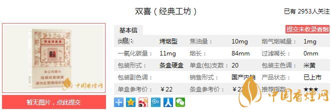 以上便是由香煙網(wǎng)小編為大家介紹的關于雙喜經(jīng)典工坊多少錢一包 雙喜經(jīng)典工坊口感及參數(shù)介紹的相關信息,想要了解更多有關內(nèi)容請點擊:七匹狼通仙3mg多少錢一包 低焦留香滿足感強