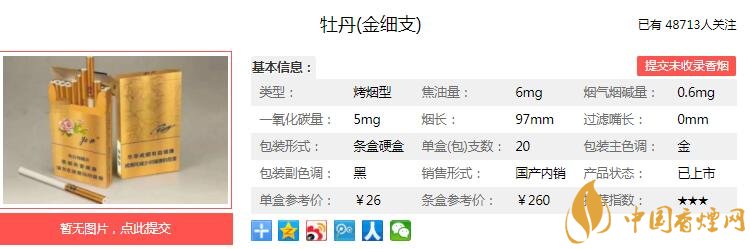 以上便是由香煙網(wǎng)小編為大家介紹的關(guān)于牡丹金細(xì)支多少錢(qián)一包 牡丹金細(xì)支口感及參數(shù)介紹的相關(guān)信息,想要了解更多有關(guān)內(nèi)容請(qǐng)點(diǎn)擊:日本黑駱駝香煙口感分析及包裝欣賞