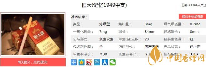以上便是香煙網(wǎng)小編為大家介紹的關(guān)于恒大記憶1949原始香煙包裝,價(jià)格還是當(dāng)年的30元一包!的相關(guān)信息,大家看完之后是不是對(duì)于這款香煙更加了解呢,想要了解更多內(nèi)容歡迎點(diǎn)擊:恒大煙魁1903口感測評(píng) 百元大佬煙色香味俱全
