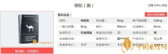 以上便是香煙網(wǎng)小編為大家介紹的關(guān)于駱駝香煙價格多少 黑駱駝只要17元一包!的相關(guān)信息,看完之后大家是不是對于駱駝(黑)這款香煙的相關(guān)信息更加了解呢。大家還想查詢更多的相關(guān)內(nèi)容歡迎點擊:無過濾嘴駱駝煙多少錢(20-50元) 無嘴駱駝煙價格表和圖片(3款)