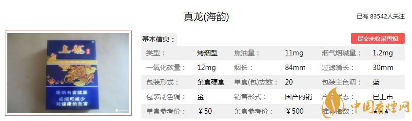 真龍海韻產(chǎn)自廣西,它被譽(yù)為廣西中煙的“神來之筆”,真龍品牌最為經(jīng)典的香煙代表作之一。它以傳統(tǒng)的龍為圖騰,配以彰顯吉祥的云紋,非常的大氣,有南海龍王之美譽(yù)。