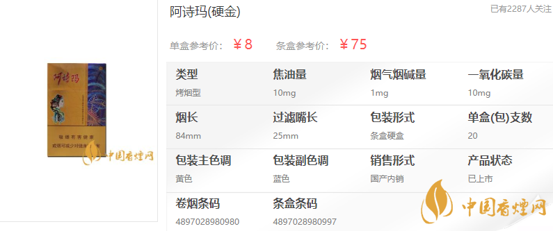 【阿詩瑪硬金多少錢一盒 阿詩瑪香煙硬盒價格表】相關(guān)推薦文章: