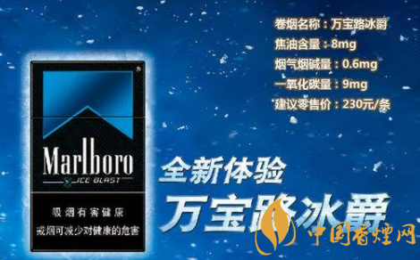 萬寶路(硬冰爵):金屬黑色包裝設計,綴以金屬藍色的萬寶路標志;清涼的煙草味道,濾嘴加入了薄荷珠子。