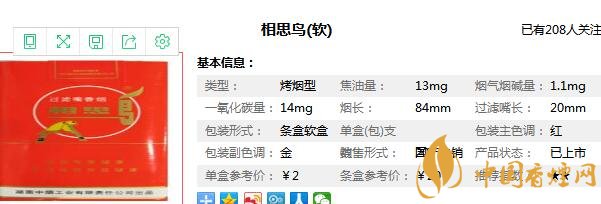 相思鳥香煙參數(shù)信息