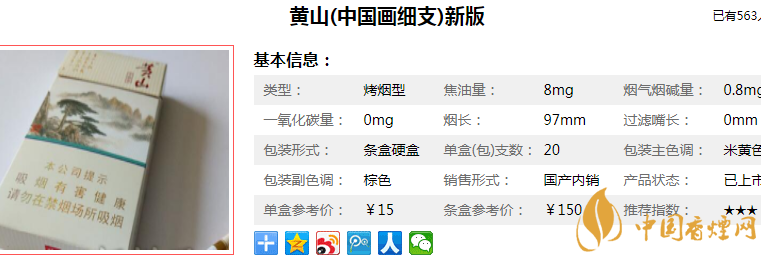 煙盒看起來(lái)仿佛不怎么出彩,不過(guò)煙支倒是看起來(lái)高大上的細(xì)支、有雪茄的味道、黃山的第三款細(xì)支,也是安徽中煙的第四款細(xì)支 ,五十六項(xiàng)專(zhuān)利好像很厲害的樣子。