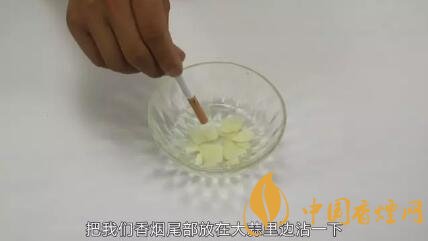 第二個(gè)小妙招也很簡(jiǎn)單,只需要準(zhǔn)備一個(gè)容器,然后用到家中常用的大蒜,把大蒜切成蒜片裝在容器里,然后倒入一點(diǎn)清水一起攪拌均勻,讓大蒜的溶液滲入到水中,待溶液靜置15分鐘,靜置15分鐘之后想抽煙時(shí),拿著香煙把香煙尾部放在大蒜里邊沾一下,因?yàn)橄銦煹奈膊克鼤?huì)吸入一些大蒜汁,大蒜汁有辛辣味,我們?cè)诔闊煹那闆r下這樣沾上然后點(diǎn)燃香煙,讓我們抽上兩口之后就感覺(jué)煙是沒(méi)有味道的,而且有惡心嘔吐的感覺(jué)。