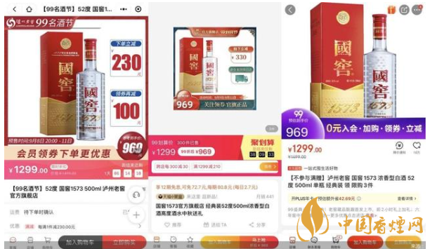 事實(shí)上,由于茅臺價(jià)格持續(xù)拉高,從而為五糧液、瀘州老窖等一線酒企的高端產(chǎn)品讓出價(jià)格調(diào)整空間。但細(xì)觀消費(fèi)市場,國窖1573的價(jià)格并沒有完全突破千元。北京商報(bào)記者發(fā)現(xiàn),52度500ml國窖1573經(jīng)典裝官方旗艦店原價(jià)1499元/瓶,活動(dòng)售價(jià)1299元/瓶。反觀其他電商平臺,該產(chǎn)品活動(dòng)售價(jià)大多在1000元左右。其中,天貓旗艦店此前售價(jià)為1299元,活動(dòng)售價(jià)僅969元;1919平臺此前售價(jià)為1399元,活動(dòng)售價(jià)999元;酒仙網(wǎng)、蘇寧易購等活動(dòng)售價(jià)為909元和969元。