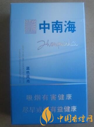包裝以海藍(lán)色為主色調(diào),白色與銀色為輔。煙盒正面翻蓋處一個(gè)鐳射防偽標(biāo)志,很精致也很漂亮,旁邊印有中南海的三個(gè)字,通過光的反射總能讓人感覺很靚很風(fēng)尚??偟目催@藍(lán)色風(fēng)尚包裝給人一種地中海風(fēng)情。