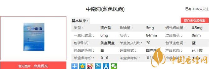 中南海藍(lán)色風(fēng)尚選取具有較強(qiáng)祛痰止咳和平喘作用的中草藥提取物,有效地減少和抑制煙草的有害成分。“藍(lán)色風(fēng)尚”產(chǎn)品中含有中草藥精華素,吸煙后不起痰、不咳嗽。