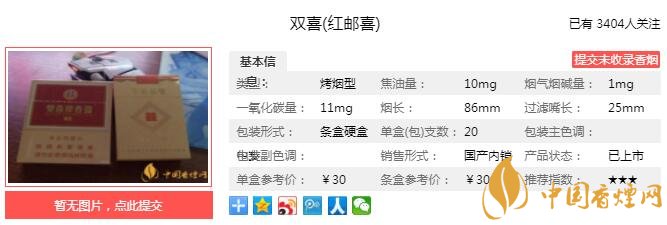 雙喜紅郵喜煙支長86mm,過濾嘴長25mm,雙喜紅郵喜以“無外香,更天然”為技術(shù)設(shè)計(jì)理念,綜合運(yùn)用工藝生香最新技術(shù),在進(jìn)一步增強(qiáng)豐富煙香、提升協(xié)調(diào)性的同時,煙氣更加綿長、柔軟,賦予其氣質(zhì)不凡的個性。下面我們一起來看 雙喜紅郵喜的參數(shù)信息:焦油量:10mg 煙堿量:1.0mg 一氧化碳量:11mg