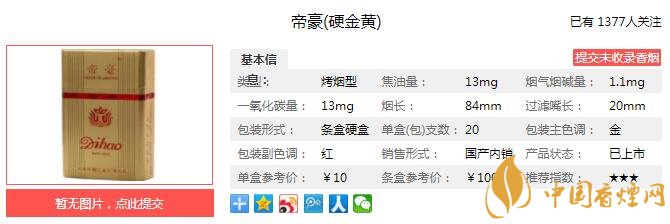 以上便是由香煙網(wǎng)小編為大家介紹的關(guān)于帝豪硬金黃好抽嗎 帝豪硬金黃價格及參數(shù)介紹的相關(guān)信息,想要了解更多有關(guān)內(nèi)容請點擊:黃山詩城口感怎么樣 黃山詩城紀念馬鞍山建市60周年