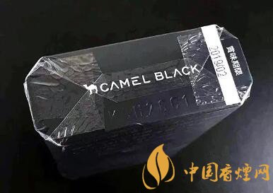 正面盒蓋頂部,一只小駱駝,后面是英文CAMEL BLACK。