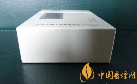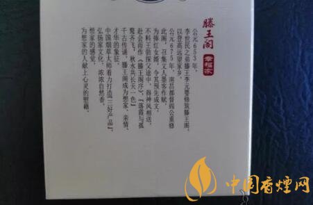 整體的包裝設(shè)計,類似于純白皮版本。王子安的名句“落霞與孤鶩齊飛,秋水共長天一色”,赫然印制于煙盒正面。