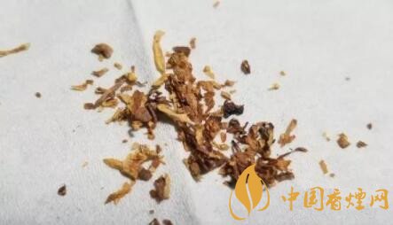 攤開煙絲,主要以明黃、棕黃的原片切絲為主,夾雜有切得極薄的煙梗。用料當(dāng)屬用心和上選。
