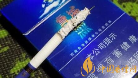 比較有趣的是濾嘴前端,款款的亮金色圓環(huán)內(nèi),有藍(lán)色花體的英文——Snow World,到底雪域是否如此直譯,沒研究過,回頭還要請(qǐng)教精通英文的朋友。圓環(huán)上部是金色的雪域字樣。