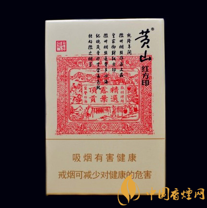 小紅方印香煙采用“露葉”,即煙株自上向下第二層避免紫外線直射且被露水滋潤的煙葉為主要原料,濕潤甘怡,而且是低焦設(shè)計(jì),口感很不錯(cuò)。4.黃山(小紅方印)—小方