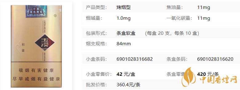 | 類型 :烤煙型 | 焦油量 :11mg | 煙氣煙堿量 :1mg | 一氧化碳量 :11mg |