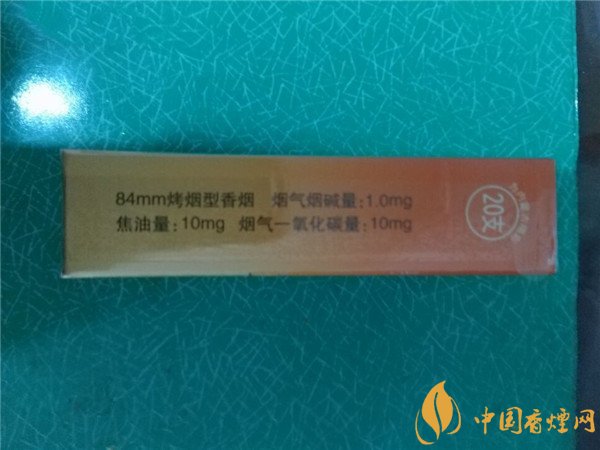 煙盒右側(cè)標(biāo)注著香煙的理化數(shù)值,標(biāo)注著過濾嘴香煙長(zhǎng)84mm,1mg煙氣煙堿量,10mg焦油量,10mg煙氣一氧化碳量,印有主品牌單位名稱,數(shù)量指標(biāo)。
