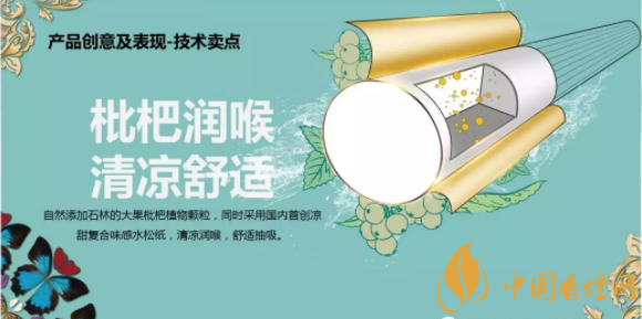 產(chǎn)品特點(diǎn):選用可直接飲用的國家1類水質(zhì)—撫仙湖水滋養(yǎng)的玉溪莊園小產(chǎn)區(qū)煙葉,片片純凈,清香純正。自然添加阿詩瑪故鄉(xiāng)石林的大果枇杷植物顆粒,同時(shí)采用國內(nèi)首創(chuàng)涼甜復(fù)合味感水松紙,清涼潤喉,舒適抽吸。自然萃取天然,清甜回甘,愉悅享受,豐富抽吸滿足感。
