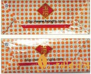 真煙所用的透明紙摩擦系數(shù)較低,透明度高,用手觸摸可感到其表面較光滑,紙質(zhì)較薄;假煙所用的透明紙材質(zhì)粗劣,摩擦系數(shù)較高,用手觸摸可感到較滯手,紙質(zhì)較厚。