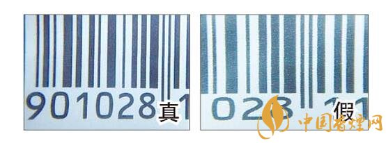 放大鏡下,真煙條形碼黑白顏色交界處平滑且鋸齒狀不明顯;假煙條形碼黑白顏色交界處鋸齒狀明顯。