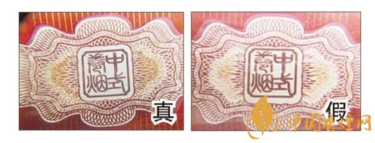 真煙燙金字體線條清晰、不漏金,金色部分成色純正;假煙燙金字體線條不清晰,有漏金現(xiàn)象,金色部分成色暗淡。