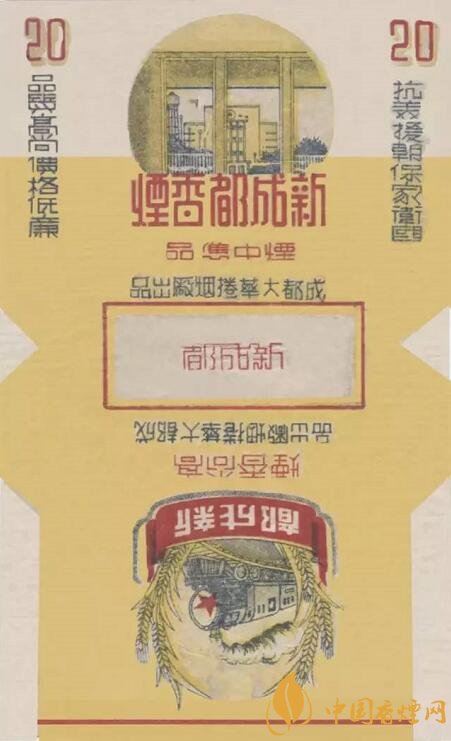 “新成都”煙標(biāo)其主圖是新投入營(yíng)運(yùn)的成都火車站,副圖是一列火車奔馳在新竣工通車的成渝線上,并印有“抗美援朝 保家衛(wèi)國(guó)”、“品質(zhì)高尚 價(jià)格低廉”等字樣,既展現(xiàn)了新時(shí)代、新成都、新面貌,也代表了當(dāng)時(shí)包含大華卷煙廠在內(nèi)的整個(gè)川煙工業(yè)的家國(guó)情懷。
