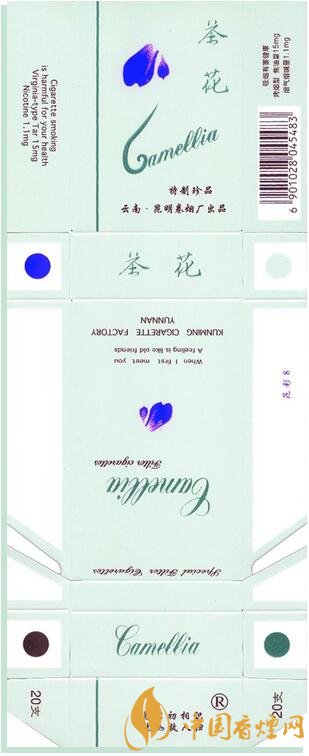 1998年昆明卷煙廠出品。“茶花”牌卷煙創(chuàng)牌于1975年,茶花是云南特有的名花,也是昆明市的市花。1975年昆明卷煙廠用英國引進的全國煙草行業(yè)第一臺過濾嘴卷煙設(shè)備,生產(chǎn)云南第1包過濾嘴香。1976年,首批銷往香港,開創(chuàng)中國過濾嘴卷煙出口創(chuàng)匯先河。