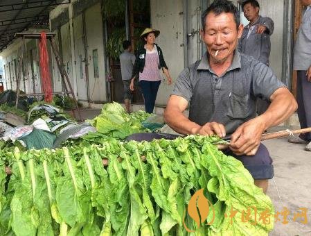 當(dāng)煙葉有綠色變?yōu)榈S,用手捏一下特粘時即可收獲。用煙刀每個葉帶煙拐割下后,在對置一天后即可上繩上架晾曬,在晾曬時要每隔幾天翻動一次,使里外煙葉都曬成黃紅色,提高煙葉質(zhì)量。