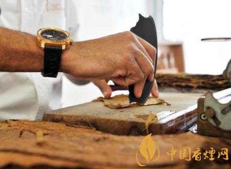 手工雪茄制作前,煙葉必須經(jīng)過風(fēng)干、發(fā)酵、醇化等200多道工序后,才被送入生產(chǎn)車間。煙葉必須是全煙葉,而且卷制雪茄的部位不同,對煙葉的要求不同。比如說茄芯、茄套、茄衣、茄帽等部位歸位在一顆植株上的話,那么就相對應(yīng)于植株的淺葉段、干葉段、淡葉段。