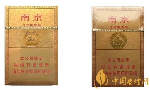 南京(精品)商標設(shè)計通體以黃色系,古南京城墻、辟邪、代表南京的龍、虎為整個商標圖案題材,在金卡紙上以南京市市花為底紋圖案,樸素、大方、尊貴。煙味香濃、芳香四溢、回味飽滿。現(xiàn)就該卷煙小盒鑒別方法介紹如下: