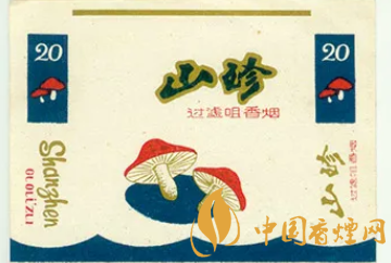 位列草菇、平菇、白蘑菇之上的香菇則是世界第二大食用菌,這種生長(zhǎng)在木材上的真菌隸屬于擔(dān)子菌綱、傘菌目、口蘑科、香菇屬,俗稱香菌、香蕈、冬菇、平莊菇。素有“山珍之王”“真菌皇后”之譽(yù)的香菇,偶爾植根于煙標(biāo),如湘西自治區(qū)民族卷煙廠出品于上世紀(jì)80年代的“山珍”(圖6)煙標(biāo),主版就突出了兩個(gè)香菇的形象。