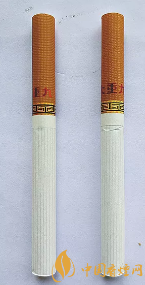 真煙側(cè)面的“雙龍戲珠”鐳射印刷清晰,立體感強,特別是珠子有強烈的類似子彈射出感。假煙的“雙龍戲珠”鐳射印刷模糊,無立體感,整體比真煙偏大。