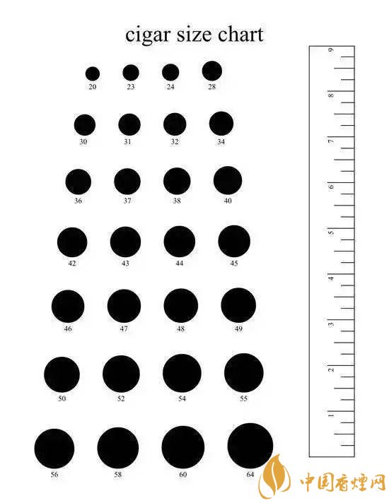 雪茄環(huán)徑,古巴當(dāng)?shù)靥囟ǖ恼f(shuō)法是,用環(huán)徑(Ring gauge)表示雪茄頭部的直徑,1 環(huán)徑= 1/64 英寸,約合 0.04 cm=0.4 mm。