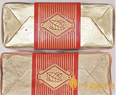 小盒商標紙印刷工藝差異對比:真品商標紙采用銅版紙,凹印印刷,“經(jīng)”字體筆畫中的“ㄑㄑㄑ”三個“ㄑ”大小基本一致,“1956”字體筆畫粗細均勻、立體感強且相對較粗;假煙采用高清掃描仿制印刷,“經(jīng)”字體筆畫中的“ㄑㄑㄑ”三個“ㄑ”大小不一致,最后一個“ㄑ”特別小,“1956”字體筆畫粗細不均勻、無立體感且相對較細,商標紙印刷工藝與真品特征存在明顯差異。